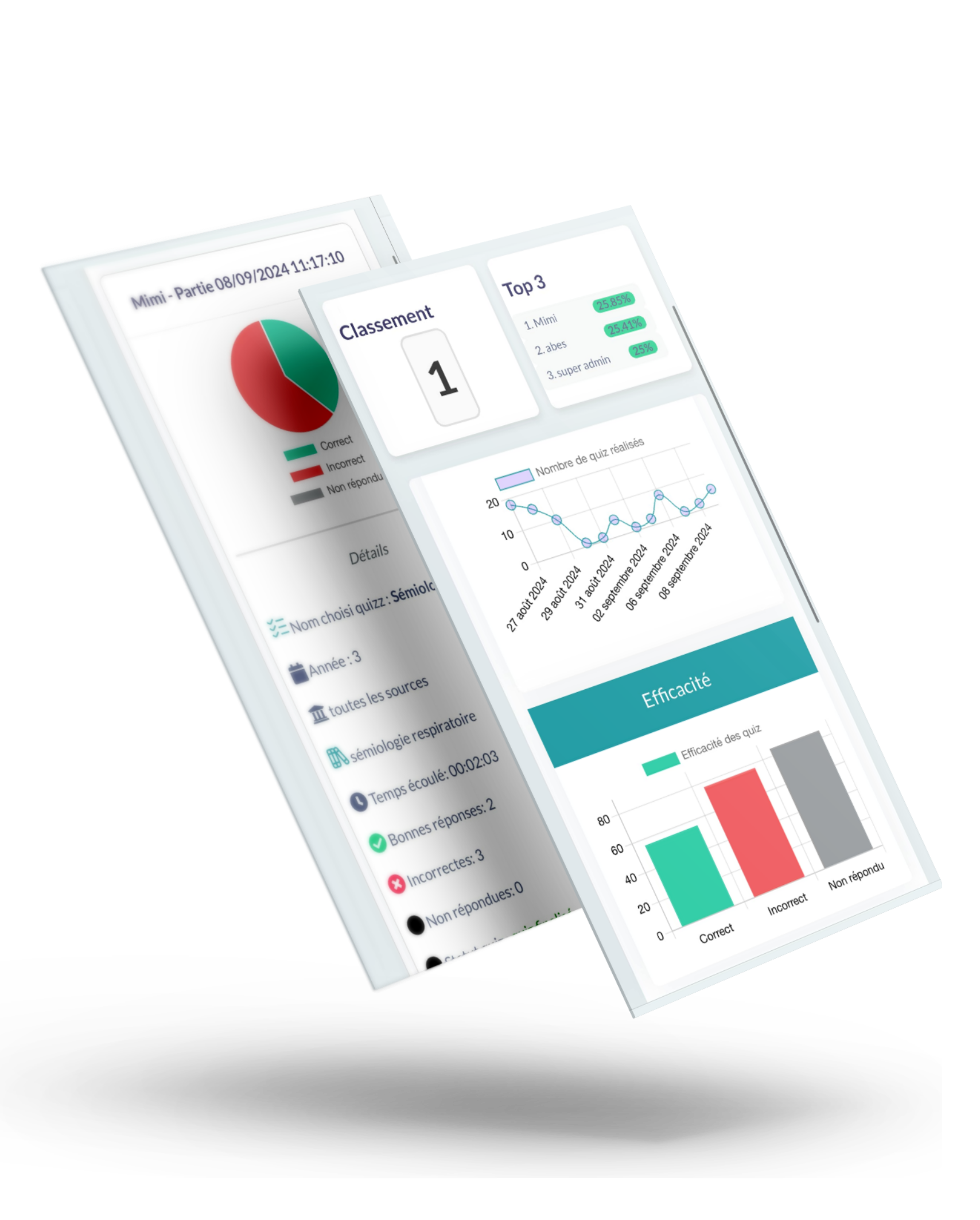 Il comporte des statistiques détaillées de votre avancement et votre classement par rapport aux utilisateurs de la plateforme ainsi que des graphes de productivité résumant votre performance durant les sessions de Quiz.